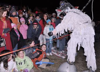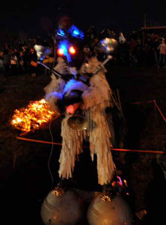 techno-primitive costumes, and improvised music, are elements that